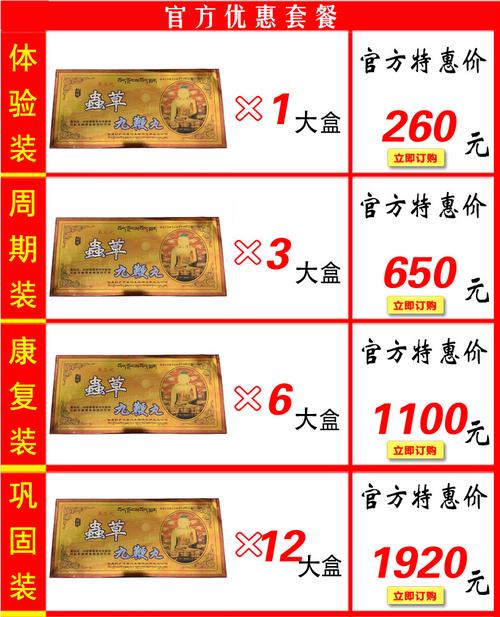 1、虫草鹿鞭王胶囊的价格398元一大盒,三盒一疗程,买二送一,买三送二,买五送三,一大盒当中有十二小盒,每一盒当中有十粒产品。虫草鹿鞭王胶囊当中的成分也都是比较天然的,大家也可以放心,这里的成分都是从天然的药材以及植物当中所提炼出来的。